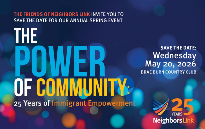 Save the date for The Power of Community: 25 Years of Immigrant Empowerment. It will take place on Wednesday, May 20th at 6:30 PM at Brae Burn Country Club. Sponsorships available now and tickets will be available soon.
